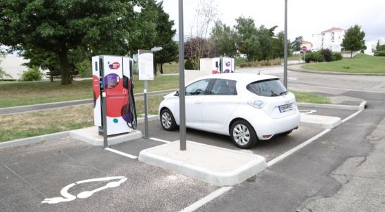 Die CNR-Ladestation im Ortsteil Ecully befindet sich an einem Kreisverkehr vor imposanten Wohnhausblöcken und macht durch ein vergleichsweise großes Hinweisschild auf sich aufmerksam. Die letzten Meter der Zufahrt sind allerdings zumindest beim ersten Mal gewöhnungsbedürftig, sodass eine Ehrenrunde durch den Kreisverkehr notwendig wurde; für diejenigen unter den Lesern, denen diese schlichte Beschreibung zu ungenau ist: aus dem Kreisel, auf Französisch giratoire oder rond point, nicht in den Chemin du Pérollier, sondern in Richtung Techlid, Maison du Département du Rhône, Déchetterie fahren und dann sofort raus auf den Parkplatz mit der Ladesäule, wo ZOE mit Hilfe der Freshmile-Ladekarte angeschlossen wurde.